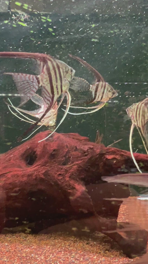 Topick AquariumRio Momon Angel (Pterophyllum scalare 'Rio Momon') Description: The Rio Momon Angel is a stunning and unique variant of the classic Angelfish, h...